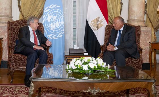 The Secretary-General praised Egypt for being “a pillar of multilateral cooperation and the linchpin in helping to defuse tensions and to ease colossal human pain and suffering.”